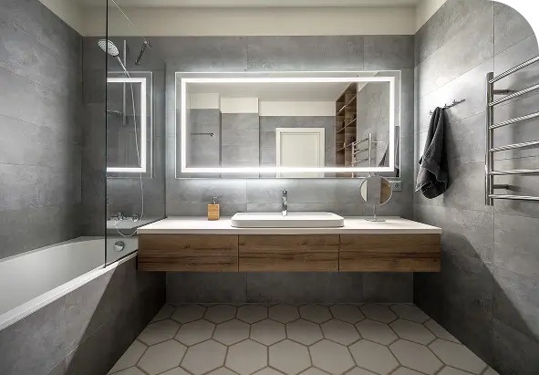 Our custom mirrors aren’t just practical; they create the illusion of more room and bounce natural light around your space for a more inviting atmosphere.